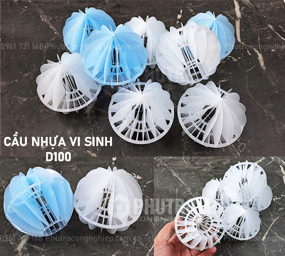 Cầu nhựa vi sinh D100 là một loại giá thể vi sinh dạng cầu có đường kính D = 100mm được làm từ nhựa PP. Cầu nhựa có cấu trúc rỗng bên trong với nhiều khe rãnh, cánh giúp tăng diện tích tiếp xúc và tạo điều kiện cho vi sinh vật phát triển.
