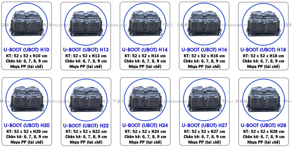 1. Hộp nhựa sàn rỗng Uboot/ Ubox (box nhựa) kích thước 52x52cm (Chiều cao thân hộp Hxx: 10 - 28cm).