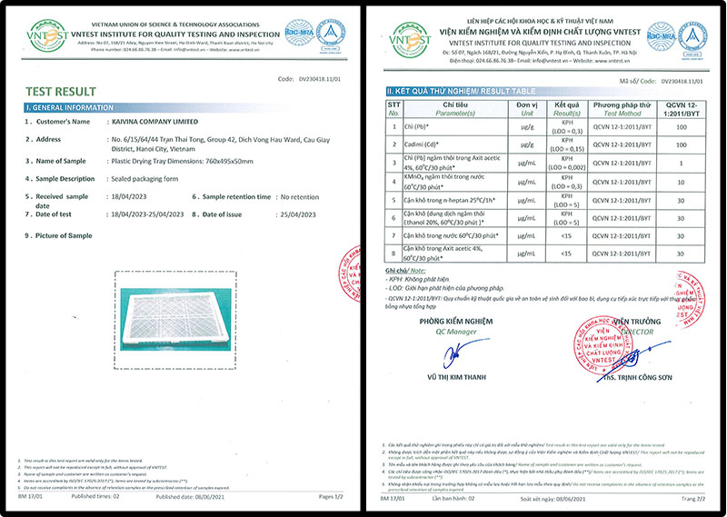♦ Công ty TNHH KAIVINA (Phutrocongnghiep.com.vn) chúng tôi là đơn vị sản xuất trực tiếp các loại khay sấy nhựa cam kết: Uy tín - Chất lượng - Gía thành hợp lý - Giao hàng toàn quốc.
