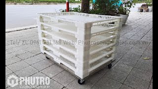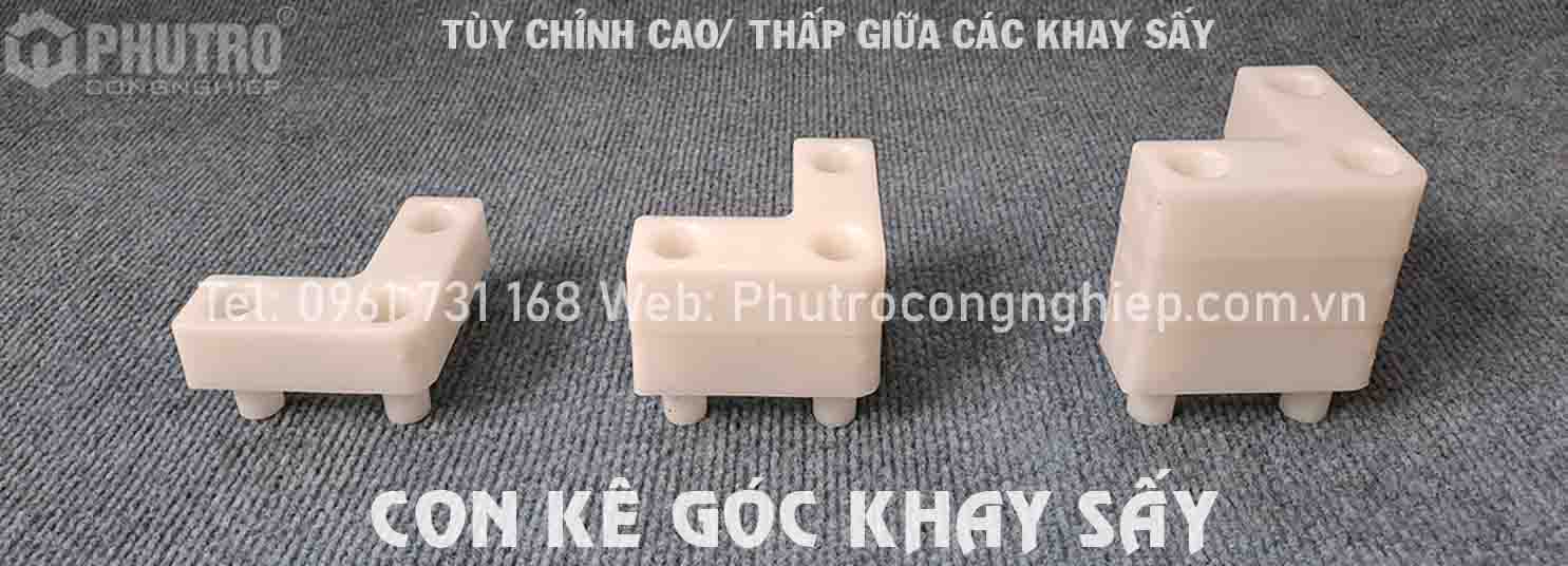 Khay sấy nhựa được thiết kế ghép thêm 4 con kê ở bốn góc của khay sấy giúp điều chỉnh Cao - Thấp khoảng cách giữa các khay với nhau đảm bảo các cản phẩm sấy được thông thoáng trong phòng sấy.