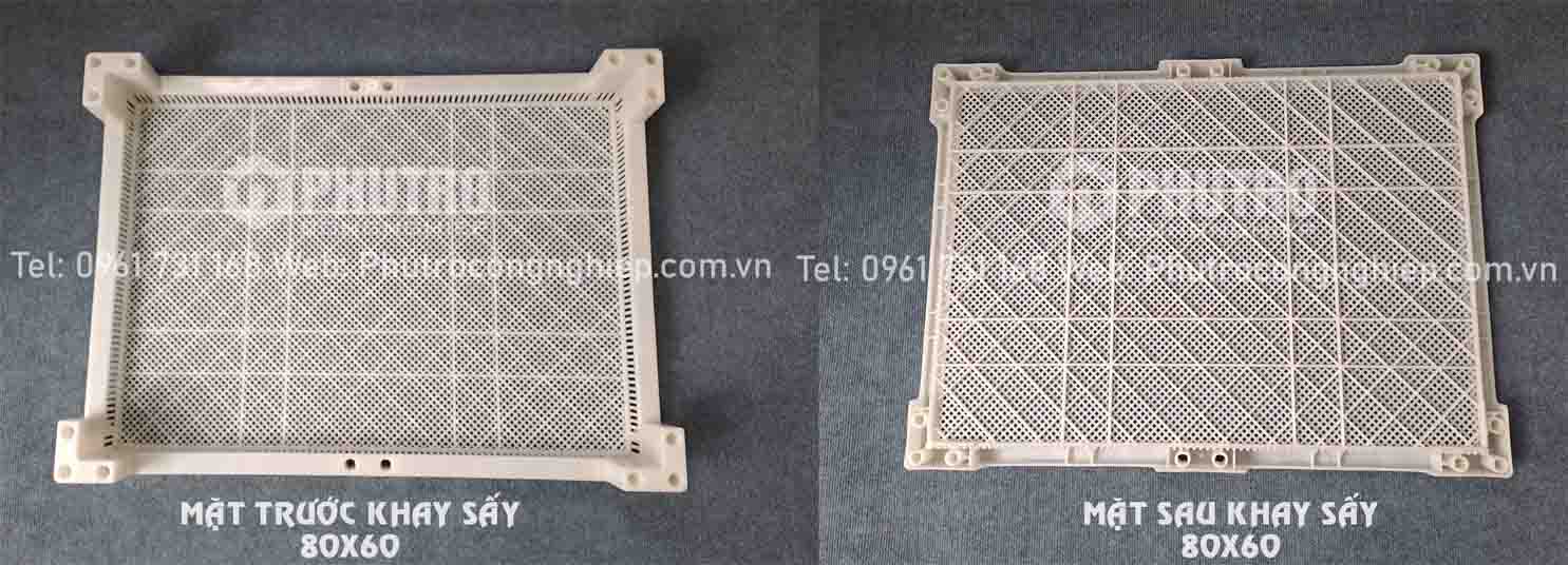 - Khay sấy nhựa có mắt đáy mau nhỏ chỉ 4.5mm thích hợp sấy các loại hạt có kích thước nhỏ.