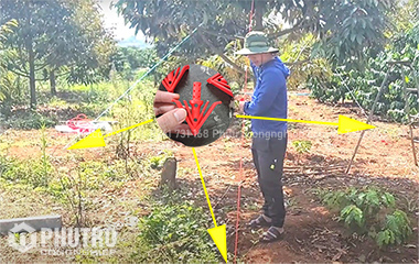 - Thắt dây vào tắc kê đất qua 2 lỗ xỏ.