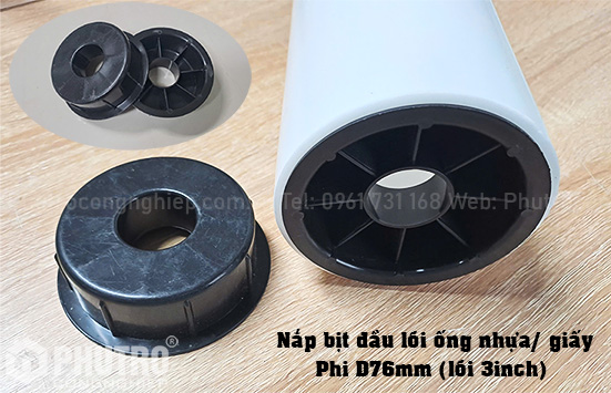 - Nắp nhựa bịt phi 76mm (3inch) dùng để đóng nắp đầu ống lõi nhựa, lõi giấy đường kính trong phi D76mm.
