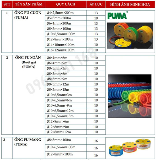 - Đường kính phi dây hơi PUMA đa dạng: Với nhu cầu trong các lĩnh vực công việc khác nhau, cũng như các thiết bị sử dụng khác nhau nên nhà sản xuất đã đáp ứng nhiều ống có kích thước khác nhau để khách hàng có lựa chọn tốt nhất.